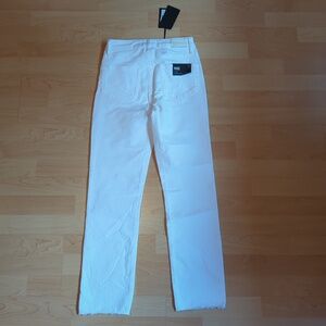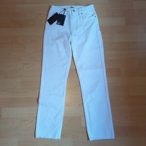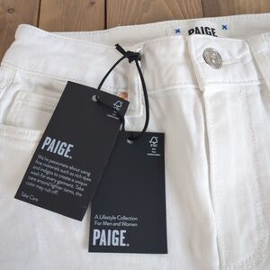 Paige Women's Cindy White Crop Straight Leg Raw Hem Jeans