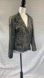 Chagal Blazer. Painted metallic look denim jacket in a lightweight cotton blend. 3 metal style buttons for the front closure. Two faux pockets and a back vent. Unlined. Distressed industrial abstract pattern. 80’s inspired Retro look. Vintage. Black with Grey Gunmetal finish. Size 10. Good Used Condition GUC.