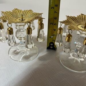 Pair Metal & Crystal Stands w Prisms Display Crystal Holder or Wooden Eggs