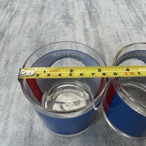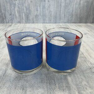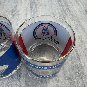 Pair of 1980's NFL Houston Oilers NFL Bar Glass Earl Campell Texans Vtg Gold Rim