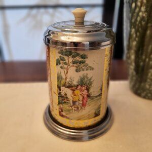 This listing is for a lovely pair of chrome tea caddies from the 1950's. Each standing approximately 5 inches and 5.5 inches respectively, these tea caddies feature cream coloured bakelite knobs on the top and a tight seal to help ensure freshness. Truly a unique set of canisters to add to your kitchen or coffee bar!