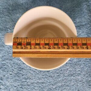 Measurements shown in photos: 4.25 inches tall, 3.5 inch opening diameter, 5 inches from edge to end of handle.
