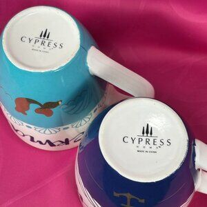 Pair of Cypress Home colorful coffee Mugs. Mermaid & Captain