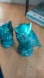 Set of teal or turquoise coloured distressed-look ceramic owl figurines. Perfect for home decor. One is slightly bigger than the other.