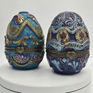 Pair of Ornate embossed Egg Heart Hinged Trinket boxes