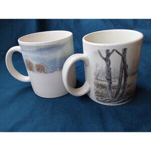 Pair of Otagiri coffee mugs owl ducks fall scene great for cottage or cabin