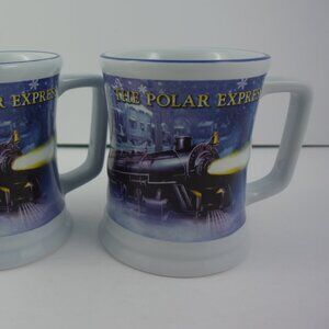 Pair of Polar Express Mugs, Heavy Ceramic, Embossed Design, LIKE NEW Condition