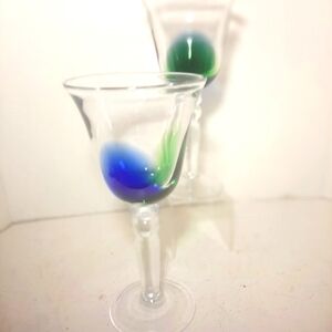 Enhance your home decor with this elegant glass art piece featuring stunning green and blue accents. Perfect for adding a touch of sophistication to any room.