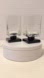 Serve your favorite drinks with this stylish pair of vintage Amaretto Di Saronno glasses. Featuring bold square clear-glass bowls set on glossy black pedestal bases, these collectible promotional glasses embody a sleek mid-century modern aesthetic. Ideal for sipping Amaretto Di Saronno, whiskey, cocktails, or aperitifs, they make a striking addition to any vintage barware collection.