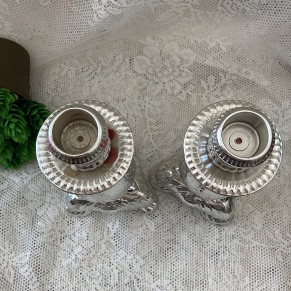 Pair of Vintage Avon glass/plastic silver coated bottle/ candlestick holders