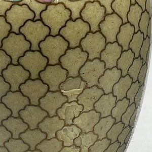 Chinese Cloisonne Lotus Vase Carved Wood Stand 4 1/2" tall.Circa Late 1960s. Acquired in China. a small on the side, see photo for detail.