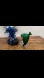 One in rich cobalt blue, the other in emerald green – both with ribbed clear glass bases
