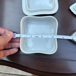 Square box: approx. 4" L × 4" W × 1.5" H with lid (10.2 × 10.2 × 3.8 cm)