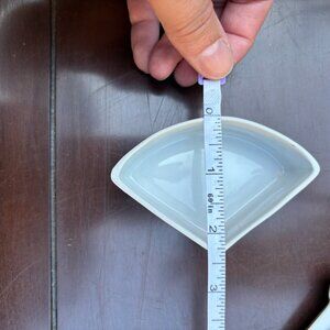 Fan-shaped box: approx. 3.75" L × 2.75" W × 1.25" H (9.5 × 7 × 3.2 cm)