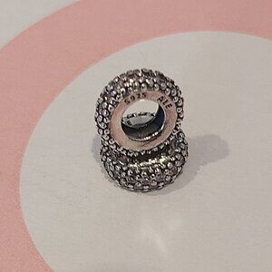 Add instant sparkle to a favorite bracelet with this hand-finished Pandora spacer charm. Cast in sterling silver, it's been polished to a shine and carefully pavé-set by hand with light pink cubic zirconia. Thread it on a bracelet, string it on a necklace as a pendant or attach it to a hoop earring to create a look that's uniquely you.