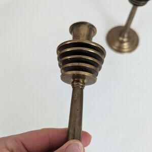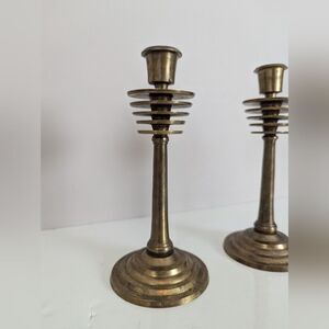 Pair of Vintage Brass Candlestick Holders – 7.5" Tall – MCM Deco Style