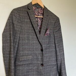 Elevate your style with this sophisticated gray checkered suit. Perfect for any formal occasion, this suit offers a classic fit and timeless design.