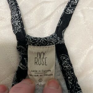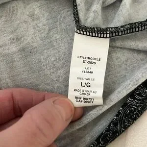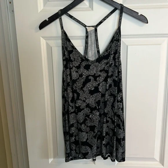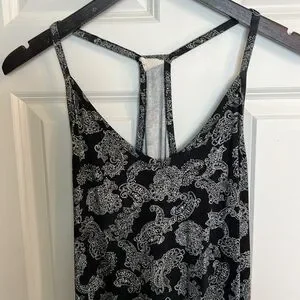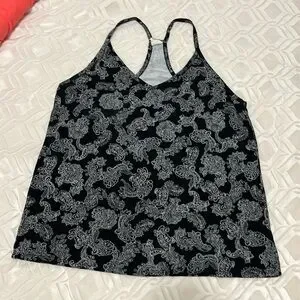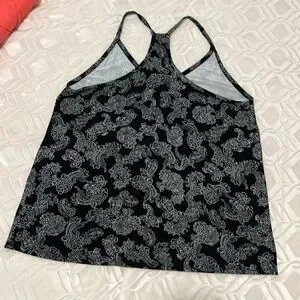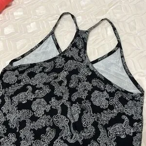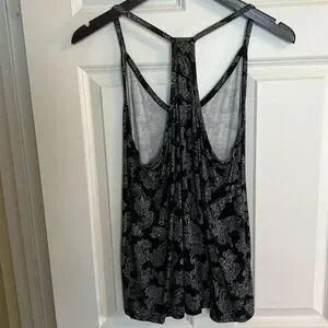 Pretty Canadian made black and white paisley racer back tank top. Tag says hand wash however machine wash cold is fine. Pit to pit 19โ across, 25โ shoulder to hem. In beautiful condition.