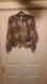 Sheer kimono cardigan with a paisley pattern. Features a mix of brown, black, and cream colors.