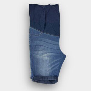 Paisley Sky Maternity Denim Shorts XL Full Panel Blue Stretch Bermuda High Rise