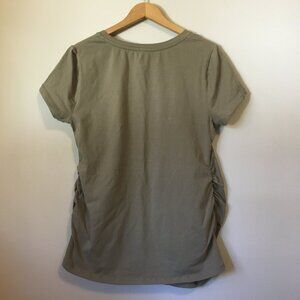 Good preowned condition olive green, cotton, maternity t-shirt by Paisley Sky. Nice stretch and ruching on the sides. Free with $25 purchase.
