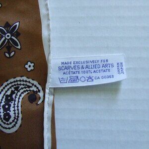 Paisley scarf vintage acetate rectangle long Scarves and Allied Arts brown white