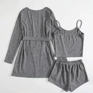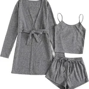 Matching Set - Robe, Camisole and Shorts. Comfy ribbed material.