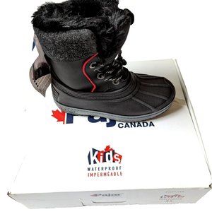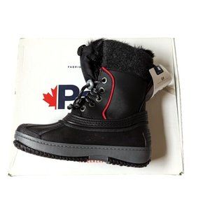 Pajar Canada Kids Girl Boy Winter Snow Boot Black Lace-up Faux Fur Lined 13,1,2Y