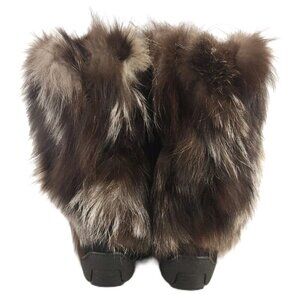 Pajar Fox Trot Winter Fur Boot Size 38 US 7.5 Womens Black Silver $620