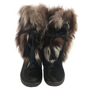 Pajar Fox Trot Winter Fur Boot Size 38 US 7.5 Womens Black Silver $620
