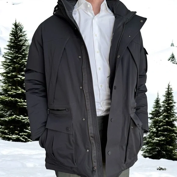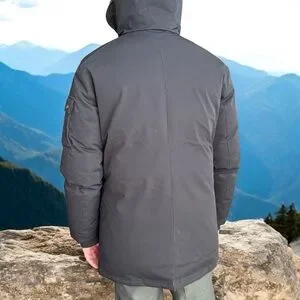 Durable and warm. Features a hood and multiple pockets. Ideal for outdoor activities.