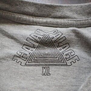 Super clean Palace Skateboards t-shirt in grey. Tagged XL but fits like Small (perfect for 5’8”, 160 lb). Like new condition with a bold back design. Ideal for streetwear or skate-inspired outfits.