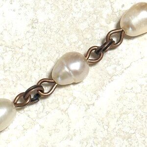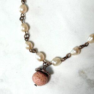 Pale Pink Freshwater Pearl Short Necklace with Cute Coral Pendant, Copper Links