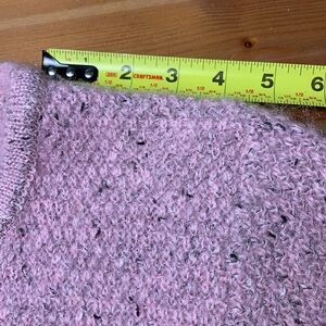 Very versatile piece! It’s a medium weight knit that has flecks of black and white in the yarn.