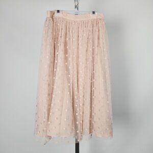 Size medium 30-32” waist. Full skirt with lots of tulle with subtle dots. Knee length.