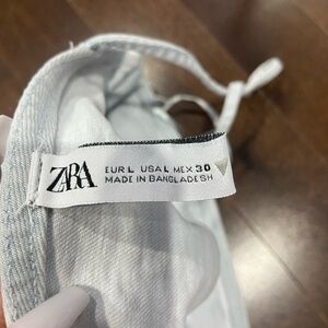 Worn maybe once or twice. Zipper side. Pale blue denim. Stiff material not very stretchy, but true to size large. Feel free to ask for measurements. Purchased from Zara