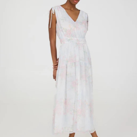 Beautiful long and flowing dress with v-neck and gathered details at shoulder. Purchased from Suzy Shier for a wedding, but never worn. Perfect new condition.