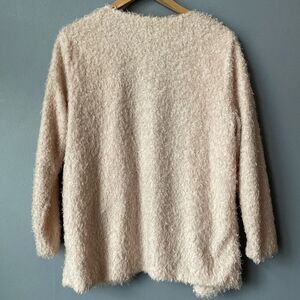 -Long cardigan in a soft, fluffy knit with dropped shoulders
