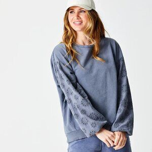 The Palermo Sweatshirt, your new statement piece for elevated loungewear. Crafted from super-soft fabric, this sweatshirt features voluminous broderie sleeves that add a striking touch to your wardrobe. Its washed finish gives it a unique, relaxed look, making it easy to wear with jeans for a laid-back vibe or layered over a skirt for a more dressed-up casual look.