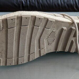 Bottes de marque Palladium, Printemps / Été , en toile `` jute ``de couleur beige avec la doublure interne à carreaux de couleur jaune, beige et brune. Grandeur 9 US / 42 EUR. En parfait état.