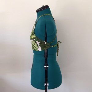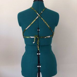 Gently used but still in excellent condition! Had it custom made on Etsy, I used it as a crop top but it is made from a swim safe material so it could also be used as a swimsuit top! Straps are attached at the top but can be adjusted and thread through different at the back.