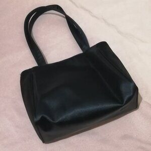 Keywords/Style Tags: satin, black, mini-tote, mini tote, purse, bag, classic, sophisticated, minimalist, clean