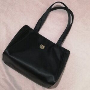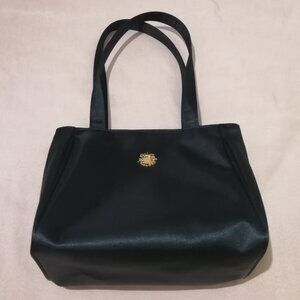 This listing is for a mini tote bag made by Paloma Picasso Parfums. The bag is done all in black with the exception of the hardware (magnetic snap closure) and the iconic Paloma Picasso signature mirror logo, which are gold tone metal. The exterior fabric (100% nylon) has a satin finish and the lining is 100% PVC. This attractive little bag also features decorative piping along the sides. Immaculate inside and out; very clean; no flaws or signs of wear that I can find.