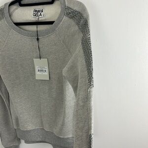 Pam & Gela Annie NWT Sweatshirt w/ Metallic Snakeskin Arm Embellishments