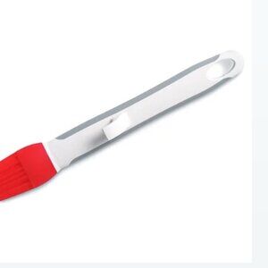 The versatility of silicone! Neatly brush sauces, melted butter, oil and egg onto foods and pastries. The handle features a hanging hook to keep messes in the bowl. Stain and odor-resistant. Heat-resistant to 500°F (260°C). 8½" (22 cm). Dishwasher-safe.