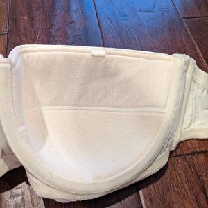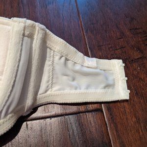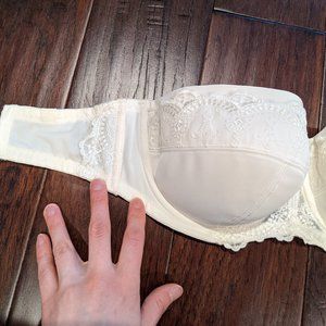 Panache Evie Bridal white strapless bra with white lace overlay in size 30F. Missing the detachable straps, otherwise in excellent used condition.