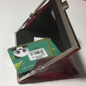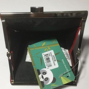 Peeking Panda design on red, silver-toned snap lock closure, 4" wide opening for easy access to inside contents