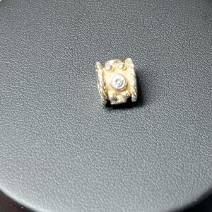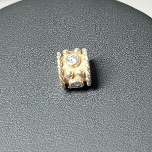 Pandora 925 Sterling Silver Charm Bead with Clear CZ Stones. Retired