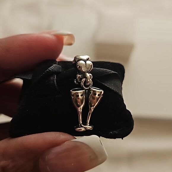 Pandora Authentic Dangle Champagne Heart Charm Silver