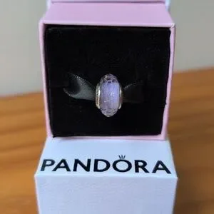Lavender glass murano Pandora charm, box is not included but comes in Pandora dust bag :)